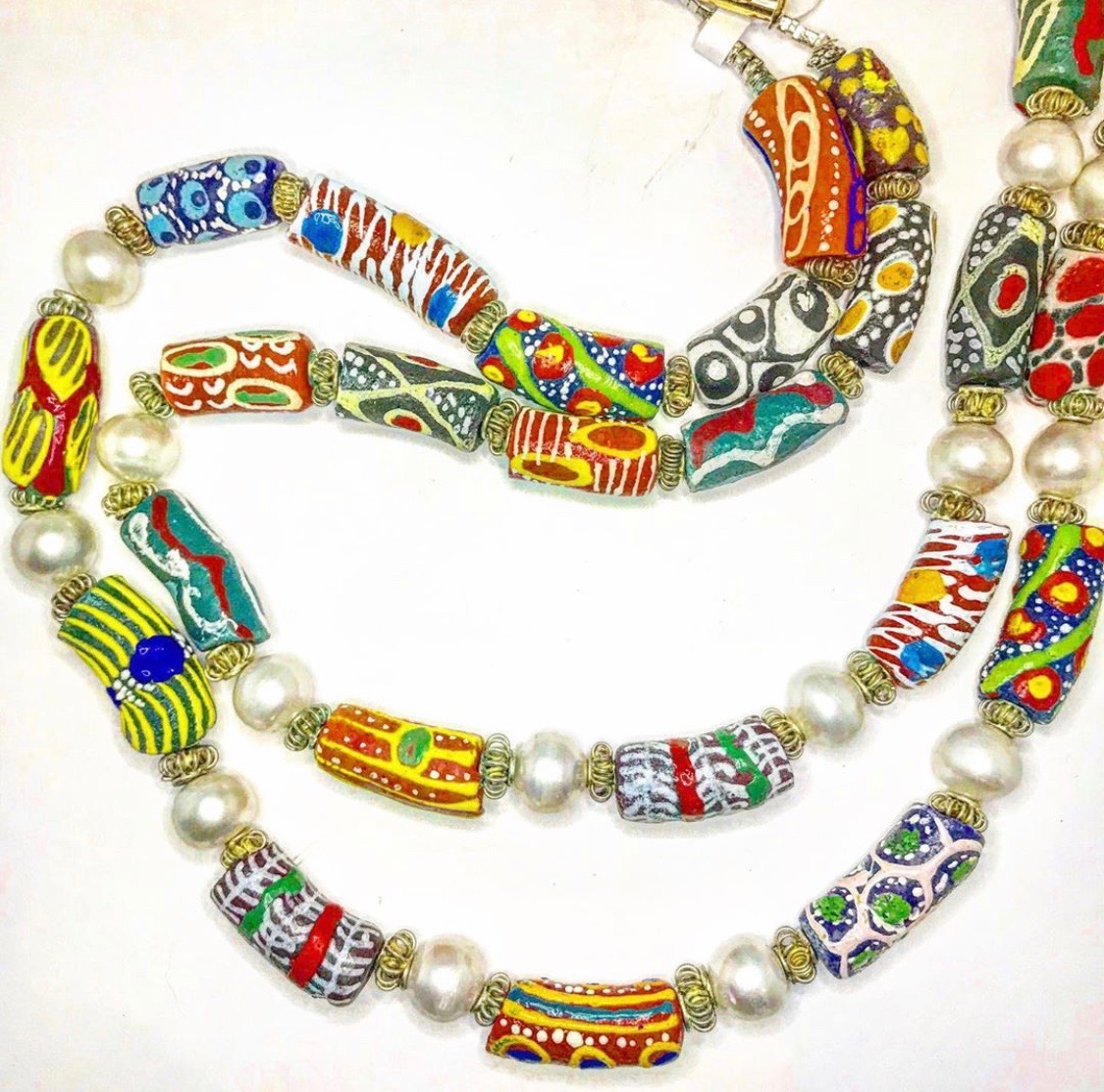 African glass beads with pearls