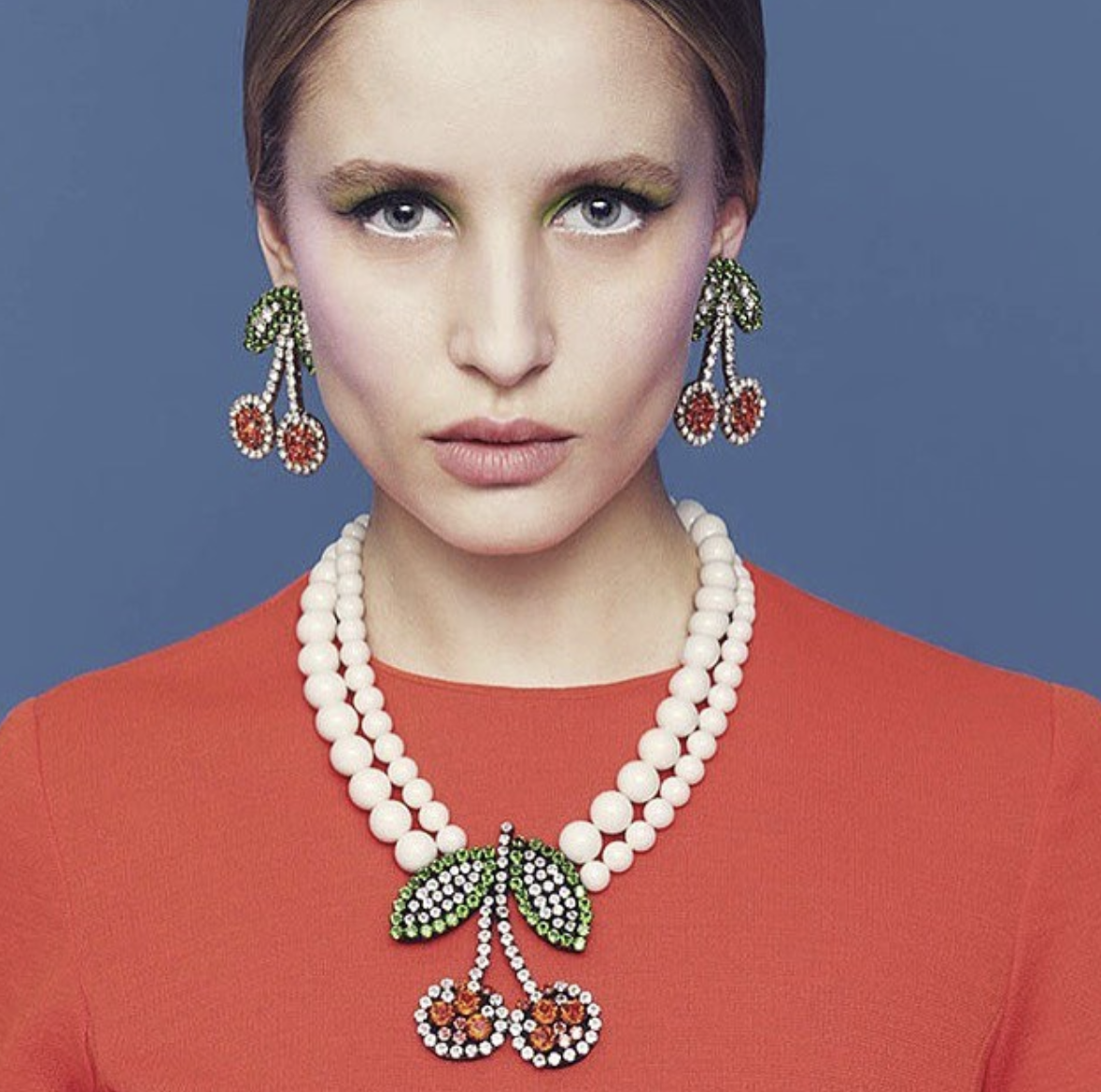 Rhinestone cherries necklace