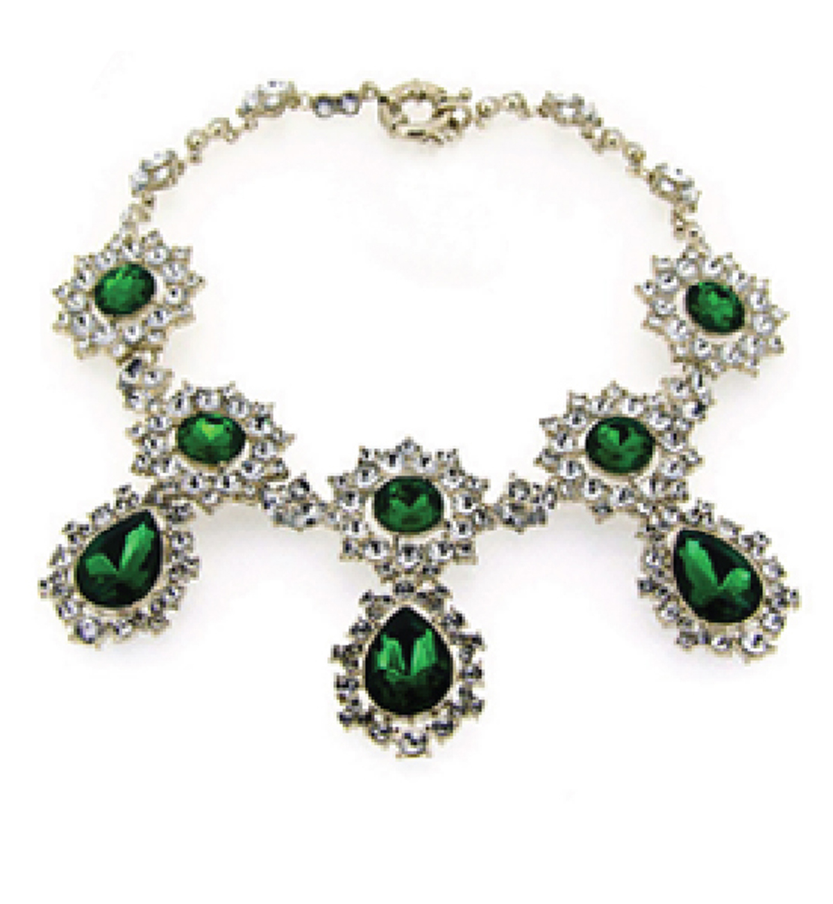 This is a very regal necklace with Emerald Swarovski. It can made a super classy and elegant statement, or mixed with something modern--simply breathtaking.